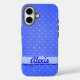 Blauer Button Punkte mit Namen auf gehefteten Streifen.
