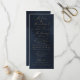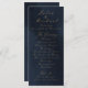 Midnight Dark Navy Blue Calligraphy Script Wedding Program Card. Moody, romantisch und modern. Die blaue Textur sieht aus wie Samt. Gold Farbe Kalligraphie Script. Teil der Julia Wedding Invitation Suite. HINWEIS: Wenn Blau nicht Ihre Hochzeitsmotiv-Farbe ist, können Sie das blaue Hintergrundbild löschen und in eine beliebige Hintergrundfarbe ändern.
