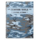 Camouflage Muster Notebook in blau und grau mit bearbeitbarem Titel und Autor Block. Personalisieren Sie auf der Produktseite Text, Ziffern oder Textsymbole Ihrer Wahl.