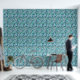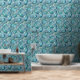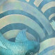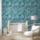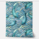 Das sind blaue Aquarellkarpfen auf einem riesenhaften, nahtlosen Muster goldhellblauer Fischwaagen.