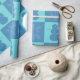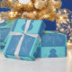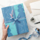 Ein trendiges Schachbrettmuster in Blautönen zeichnet sich durch eine einfache Schneeflocke und einen Schneemann aus. Ideal, um diese Wintergeschenke zu verpacken.