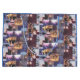 Dieses Collage Sortiment von Winter- und Weihnachtsszenen in blauen Tönen stellt eine Zuhause für den Urlaub mit Kerzen und Außenleuchten dar, um den Weg durch den Schnee zu erhellen.