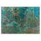 Auf dieser rechteckigen Glasplatte, die das Foto der wunderschönen, türkisfarbenen Chrysocolla-Steinplatte zeigt, würzen und würzen Sie Ihr Essen sicher. Die perfekte Größe für das Hacken und Tauchen von Kleingemüse und Obst. Bitte beachten Sie, dass in diesem Artikel kein echter Stein enthalten ist.