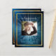 Un programme élégant de 2 pages. Un ciel bleu foncé comme arrière - plan, un cadre faux or, et espace pour une photo. Poutres lumineuses derrière la photo. Personnalisez et ajoutez le nom, les dates et votre texte.