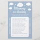 Feiern Sie mit unserem "Mommy or Daddy Blue Cloud Baby Shower Game" Ihr vom Himmel schicktes Baby-Duschthema blau. Dieses traumhafte Baby-Duschthema eignet sich perfekt für jede Cloud-Babydusche oder Cloud-Theme für Babydusche. Mit einer Babydusche zum Thema Engel und einer kleinen Dusche zum Thema "Paradies für Babys" ist es ideal für eine Cloud-Dusche zum Thema "9 Babys". Das Thema "On Cloud 9 Baby Dusche" mit bezaubernden blauen Wolken macht Ihre Cloud zu einem ganz besonderen Thema für die Babydusche!