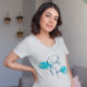 Boho und traumhafte Babydusche T - Shirt Design mit Aquarellbildern von türkisblauen Wolken. Im Text steht: "Wir sind auf Wolke neun."
