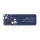 Elegante und moderne, anpassbare Rücksendeadressen-Aufkleber für Hochzeiten in dunkelmarineblau pfirsichfarbenen orangefarbenen und weißen japanischen Blüten Vintage Muster. Passen Sie diese Vorlage an, um ein einzigartiges Adressetikett für Ihre Hochzeit zu erstellen. Kontaktieren Sie uns für eine Farbänderung. Viele passende Hochzeitsartikel sind erhältlich.