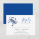Diese RSVP Karten sind perfekt für Meeres- und Küstenfeiern geeignet und sind eine stilvolle Ergänzung zu jedem Hochzeitsthema am Strand - besonders für Hochzeiten im Frühjahr und Sommer. Diese elegante Antwortkarte, die sich mit meinem kompletten Hochzeitsgeschoss-Set abstimmt, verfügt über eine handbemalte Aquarellkrabbe in sanfter Ozeanluft und bietet Platz für die Gäste, um die Auswahl der Mahlzeiten oder des Abendessens anzuzeigen. Auf der Rückseite ist ein massives Marineblau für eine saubere, küstennahe Oberfläche. Für passende Schreibwaren und elegantere UAWG besuchen Sie www.zazzle.com/dotellabelle.
