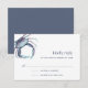 Die RSVP-Karte im Küstenstil enthält Ihr Wunschtermin und den benutzerdefinierten Akzeptanz/Niedergang in marineblau, betont mit einer Vintagen Aquarellblau-Krabbenabbildungen. Entworfen, um unsere Blue Crab Hochzeit Einladungen und Zubehör zu entsprechen.
