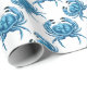 Ein blaues Krabbenmuster für dieses Gefühl am Meer. Hier mit einem weißen Hintergrund dargestellt, können Sie den Hintergrund in eine andere Farbe ändern, indem Sie die Option "Anpassen" verwenden. Stellen Sie sich vor, wie schön Ihre Geschenke in diesem wunderschönen Küstenstreifen eingewickelt aussehen werden.