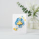 A light and cheerful flat note card featuring a blue crochet bunny in a soft yellow dress, styled with yarn details and small decorative accents.