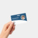 Personalisieren Sie diese horizontalen blauen Abzeichen mit einem Mitarbeiter-Foto, Firmenlogo, Bar, Mitarbeiter-ID und Namen.
