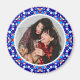 Frohe und festliche blaue Weihnachts Foto Picture Frame Round Gift Magnet für Familie und Freunde. Ein farbenfroher und leuchtend kreisförmiger Dekor für Ihren Winter und eisblauen Dekor. Das Rahmendesign ist ein jolly geometrisches Abstraktionsmuster, das traditionelle festliche Farbblockdesigns annimmt. Im Winter sind die Farben eisblau und schneeweiß, mit dunkelrotbraunen Farbtupfern. Personalisieren Sie es, indem Sie das Foto mit Ihrem eigenen, für ein frühes Geschenk für Familie und Freunde, um Weihnachten zu feiern. Zieh deine Yuletide-Erinnerungen eines Winterwunderlandes. Eine großartige Möglichkeit, die Küche Kühlschrank und Zuhause Office Magnettafel für die besten Freunde, Brüder und Schwestern, oder Paare zu dekorieren. Eine preisgünstige Familie sorgt für Feierlichkeiten.