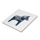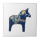 Dieses blaue Dala Horse Tile, mit verlassen Keramik Fliesen-Design ist aus einem Holzpferd, entworfen, geschnitzt und von Julia Morrill bemalt