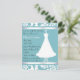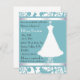 Hübsche Braun-Dusche aus Aquamarine und Weiß, mit einem schönen Hochzeitskleid auf einem dekorativen Ständer. Passen Sie den Text an den Anzug Ihres Party an.