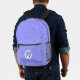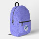 Blaue Quadrate mit monogramm Rucksack. Ein Kreis von weißen quadratischen Quadraten enthält die erste, um Ihr Element personalisieren. Ideal für die Rückkehr in die Schule, für Tageswanderungen oder einfach nur das Ausgehen.