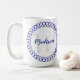 Genießen Sie Ihren morgendlichen Kaffee oder Tee mit einer personalisierten Blue Decorative Circle Monogram Tasse. Die Tasse-Gestaltung weist einen dekorativen Kreis auf, der mit Ihrem Namen und Monogramm personalisiert werden kann. Auch zusätzliche Geschenkartikel sind in diesem Design erhältlich. Wenn Sie Hilfe bei der Personalisierung benötigen, kontaktieren Sie mich bitte direkt.