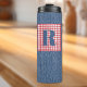 Blue Denim, Red & White Karo, Large Initial 12oz Thermosbecher
