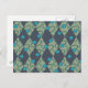 Harlequin Diamant-Hintergrund in lila-blau und eggshell. Hellblaue Kreise mit Kugeln.