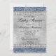 Eine üppige und luxuriöse Jungs Baby Dusche Einladung mit blau zerkleinertem Samt mit silbernen Flocken, Silber Zentrum, 2 Reihen von Diamanten. Eine elegante und raffinierte Babydusche lädt ein.