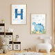 Create a playful and cozy atmosphere in your baby boy’s nursery with this adorable set of 2 blue dinosaur wall art prints. Featuring a cute watercolor dinosaur and a personalized initial name print with clouds and stars, this art set adds a soft, whimsical touch to any kids’ room.