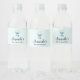Event-Wasserflaschen-Etiketten mit einem hübschen Aquarelltränken-Träumer. Blau, Türkis und Creme. Dekoriert mit Federn, Perlen und Blume.