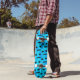Auf blauem Hintergrund abgebildet sind musikalische Noten