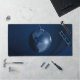 globe bleu avec tapis de bureau bleu foncé arrière - plan