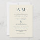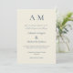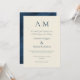 Schöne Braut & Bräutigam Monogramme an der Spitze dieser schönen Hochzeitseinladung. Ecru Hintergrund mit tiefblauem Schriftart zu koordinieren mit dem bedrückten blauen Rücken dieser eleganten Einladung. Absolut atmen.