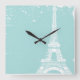 Blue Eiffel Tower Custom Wall Clock Quadratische Wanduhr