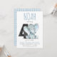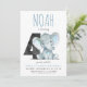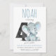 Cet invitation présente un éléphant bleu pour une fête de quatrième anniversaire. Le dos de l'invitation a un motif bleu en vichy ; parfait pour le thème animal de la jungle garçon fête de 4ème anniversaire. Personnalisez l'invitation avec vos détails et vous avez les options pour acheter des invitations imprimées ou un téléchargement numérique.