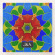 Ein schönes Jugendstil-Design mit Blumenmuster mit roter Blume und stilisierten grünen und goldenen Blütenblättern. Der Hintergrund ist ein lebendiges Kobaltblau mit dem Aussehen eines Glasemaills. Sie können entweder die ersten Initialen eines Paares hinzufügen, wie im Beispiel, oder bis zu 3 Initialen für eine Person, oder einen kurzen Namen.