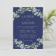 Diese minimalistische Hochzeitseinladung bietet ein schönes Salbei-grünes Eukalyptusblatt und Grünpflanzen auf einem schlichten marineblauen Hintergrund. Das moderne und schlichte Design ist ideal für Paare, die eine schicke und elegante Einladung gewollt haben, ohne dabei zu glänzen. Der hochwertige Druck und das hochwertige Kartenmaterial sorgen dafür, dass Ihre Gäste von der Einladung begeistert sind. Mit seinem dezenten und dennoch raffinierten Design ist diese Einladung sicher, den Ton für Ihren besonderen Tag Set. Personalisieren Sie es mit Ihren eigenen Daten, um es zu Ihrem ganz eigenen zu machen. Ideal für eine Hochzeit im Herbst!