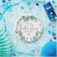 Brautparty für das Blue Eukalyptus Script Name Date. Aquamarines blaues Blattwerk grenzt an die Kanten mit Namen und Datum in der Mitte, die Sie leicht personalisieren können, und ein modernes handgeschriebenes Set für Brautparty.