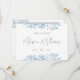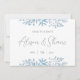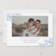 Diese moderne Hochzeitseinladung besticht durch eine geometrische Grenze, staubige blaue Eukalyptus-Blätter und einen romantischen Schriftart. Ersetzen Sie das Foto auf der Rückseite durch das eigene. Karo in der Kollektion "Blue Eucalyptus".