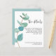 Budget Blue Eukalyptus Wedding Informationen Details. Ein Preis SMALLER 4,5" x 5,6" Alternative. Erhältlich in einem SEMI GLOSS 110lb CARD STOCK, welches die Standardoption ist (empfohlen für Einladungen), ODER einem SATIN FINISH 80lb THINNER PAPER STOCK (ideal für Gehäuse). Umschläge sind optional und etwas größer als die Kartengröße. Moderne Eleganz, um Ihren Gästen Informationen zu geben, die sie für Ihren Hochzeitstag benötigen. Ein Bereich Eukalyptus-Blätter läuft auf der links Seite hoch, und Set-Typografie in schwarz für die Hauptüberschrift The Details ergänzt die Erholung des Textes, das Sie leicht personalisieren können.