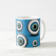 Blue Eye Iris © Sunny Mars Designs. Coole, lustige, individuell bedruckte blaue Augapfel-Standard-Tasse mit einer trendigen, modernen, schönen, einzigartigen, freaky, gruseligen, bizarren und verdrillten grafischen Darstellung einer auffallenden, blauen realistischen Augenliris eines Auges. Weitere Farbeyeball-Designs sind ebenfalls im Handel erhältlich.