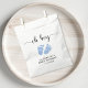 Niedliche Gastgeschenk-Tasche für Ihre Babydusche mit "oh Junge" in einer stilvollen Schrift mit Wimpern und einer blauen Wasserfarbe von Babyfüßen. Unterhalb können Sie sich einfach mit Ihrem Namen und Ihrem Duschdatum personalisieren.