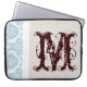 Blue Filigree Damask White Gray Wirbel Design Paper Texture Paper-Texture Monogram Initial 15" Laptop Case Bag Personalisiert