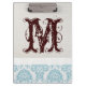 Blue Filigree Damask Monogram Initial Clip Board Klemmbrett