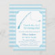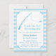 Attrape la joie ! Elle a un garçon ! Ce baby shower à thème de pêche élégant, contemporain et moderne est dans une palette de couleurs bleu simple pour signifier l'arrivée prochaine d'un bébé garçon ! Il a une canne de pêche qui se dévoile non pas dans un poisson, mais dans un petit sucette sur son hameçon. Personnalisez avec vos détails de baby shower. Arrière - plan de rayures bleu pastel.
