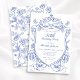 Blue Floral 50. Geburtstagsparty Einladung. Feiern Sie Ihren Meilenstein mit dieser blauen Blumeneinladung mit einem Vintagen Wappen und einem eleganten Chinoiserie Design. Feine Details und zeitlose Muster schaffen einen raffinierten Look, der perfekt für die besonderen Momente des Lebens geeignet ist. Diese Einladung verbindet klassischen Charme mit raffinierter Kunst und setzt den Ton für eine unvergessliche Feier, die zugleich stilvoll und unvergesslich ist.