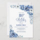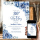 Laden Sie Ihre Freunde und Lieben mit dieser blauen blumenreichen 80. Geburtstagsfeier ein. Der anpassbare Textbereich in dieser Einladungsvorlage ermöglicht es Ihnen, mühelos alle notwendigen Details für Ihre Geburtstagsfeier, einschließlich Datum, Uhrzeit, Veranstaltungsort und UAWG, einzubinden. Für Ihre einmaligen Einladungen stehen verschiedene Papiertypen und Eckstile zur Verfügung, ebenso die Möglichkeit zum Download, wenn Sie ein digitales Format bevorzugen.
