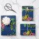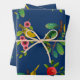 Blue Floral Bird Print Geschenkpapier Set