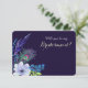Frag ihr, mit dieser hübschen boho Aquarell Blumenkarte deine Bridesmaid zu sein! Es zeigt Ihren eigenen Text in hellgoldfarbenem auf einem dunkelblauen Feld an. Eine blaue, florale Aquarellverzierung mit einer bohenhaften Pfauenfeder und blauen Beeren schmücken die rechte Seite. Auf der Rückseite der Karte befinden sich zusätzliche Textfelder, die Sie auf demselben blauen Hintergrund anpassen können. Diese Karte passt zu Hochzeitseinladungen und anderen Hochzeitsartikeln in unserem Geschäft.