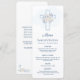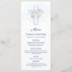 Modern watercolor blue floral Baptism Menu - Cross with white roses and bluish flowers.