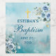 Blue Floral Cross Baptism Weinetikett