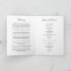 Élégant programme funéraire avec un arrière - plan blanc classique, flores d'aquarelle bleu rustique, une photo de la personne décédée, les détails funéraires, une nécrologie, l'ordre de service et une note de remerciement personnalisée sur le dos.