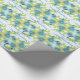 Umschlagpapier mit einem mehrfarbigen Blau & Frühling-Grün-Druck auf weißem Hintergrund. Text in koordinierender Farbe lautet "Happy Birthday". Erstellt auf glänzendem Papier, aber Sie können wählen, Papier Auswahl. Passen Sie dieses Objekt an oder kaufen Sie, wie es ist. Siehe auch Teller und Servietten koordinieren und Einladungen.