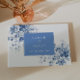 Machen Sie Ihren Hochzeitstag mit unserem individuell gestaltbaren, eleganten, staubblauen, blumengeschmückten Hochzeitsgast-Gästebuch einzigartig. Mit den Namen und dem Datum des Paares ist dies perfekt für Ihre Verlobungsfeier, Probe oder Hochzeit. Personalisieren Sie Ihren Text für eine stilvolle Ergänzung Ihrer Hochzeit und drucken Sie ihn einfach mit Zazzle aus!